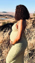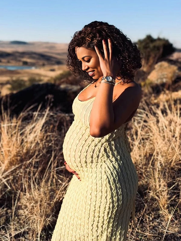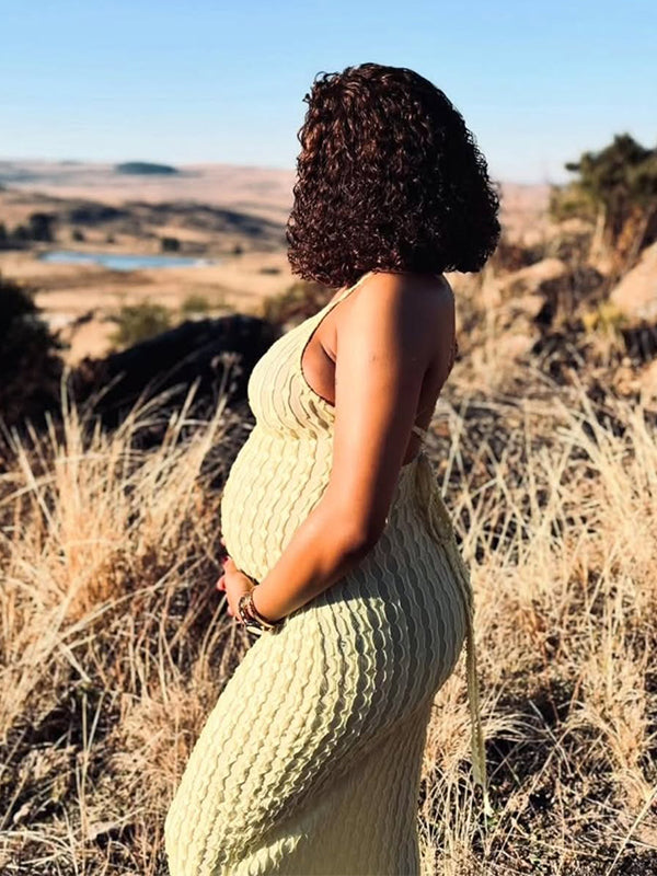 Momnfancy Falbala Open Back Lace-up Spaghetti Strap Maternity Maxi Dress