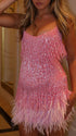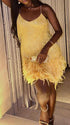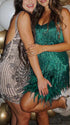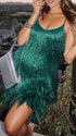 Momnfancy Gliter Sequin Fringe Tassle Feather Cami V-neck Elegant Cocktail Party Plus Size Maternity Baby Shower Mini Dress