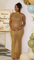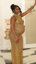 Momnfancy Gold Rhinestone Mesh Photoshoot Plus Size Evening Gown Babyshower Maternity Maxi Dress