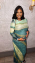 Momnfancy Gradient Color Waist-cinching Ruched Mermaid Photoshoot Maternity Maxi Dress