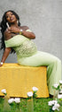 Momnfancy Green Off Shoulder Lace Sheer Splicing Ruched Bodycon Cap Sleeve Photoshoot Maternity Maxi Dress This green maternity gown combines a fresh off-shoulder neckline with delicate lace sheer panels for an ethereal photoshoot look. The cap sleeves frame your shoulders, while the lace inserts create subtle allure. The ruched detailing at the waist gracefully contours your pregnancy silhouette, and the bodycon mermaid hem enhances your elegant figure. The soft green hue evokes natural charm, with a stretch lining that gently supports your bump. Perfect for forest-themed photoshoots, garden parties, spring celebrations, or maternity portraits, this dress will make you radiate fairy-like grace, ensuring you become the most refreshing presence in every frame.