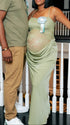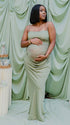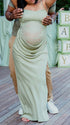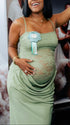 Momnfancy Green Spaghetti Strap Backless Lace Sheer Bodycon Party Mermaid Baby Shower Maternity Maxi Dress