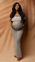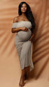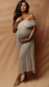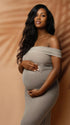 Momnfancy Grey Mesh Sheer Off Shoulder Bodycon Mermaid Photoshoot Maternity Maxi Dress