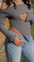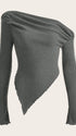 Momnfancy Grey One Shoulder Irregular Ruffle Knit Fashion Daily Fashion Maternity Sweater Top