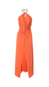 Momnfancy Halter Neck Chain Bodycon Side Slit Open Back Maternity Maxi Dress