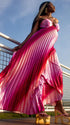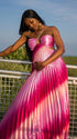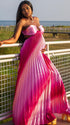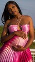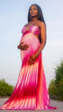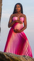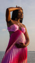 Momnfancy Halter Neck Gradient Color Pleated Maternity Maxi Dress