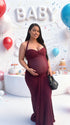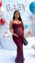 Momnfancy Halter Neck Mermaid Bodycon Sheer Ruched Maternity Maxi Dress