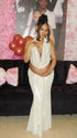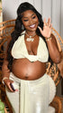 Momnfancy Halter Neck Crop Bodycon Draped Baby Shower Maternity Maxi Dresses