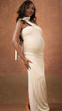 Momnfancy Halter Neck Ruched Maternity Maxi Dresses