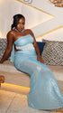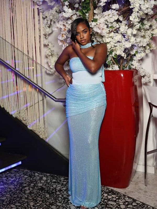 Momnfancy Halter Neck Sheer Sparkly Mermaid Baby Shower Maternity Maxi Dress