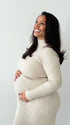 Momnfancy High Neck Bodycon Knitted Casual Photoshoot Maternity Midi Dress