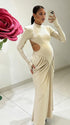 Momnfancy High Neck Cut-out Ruched Splicing Trailing Photoshoot Maternity Maxi Dress
