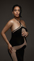 Momnfancy Hit Color Halter Neck Bodycon Cut-out Maternity Maxi Dress