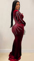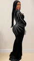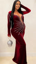 Momnfancy Hotfix Rhinestones Plunging Neckline Bodycon Evening Gowns Maternity Mini Dress