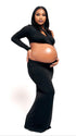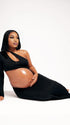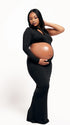 Momnfancy Irregular Sleeve Oblique Shoulder Cut-out Photoshoot Maternity Maxi Dress