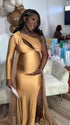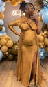 Momnfancy Gold Cut Out Side Slit One Shoulder Bodycon Evening Gowns Babyshower Maternity Maxi Dress