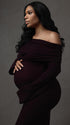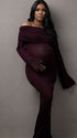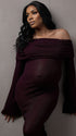 Momnfancy Knitting Off Shoulder Backless Ruched Bodycon Flare Long Sleeve Bodycon Maternity Sweater Maxi Dress