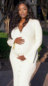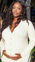 Momnfancy Knitting Ruffle Single Breasted V-Neck Flare Long Sleeve Bodycon Maternity Sweater Maxi Dress