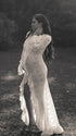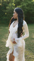 Momnfancy Lace Falbala Splicing Flare Sleeve Side Slit Maternity Maxi Dress