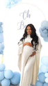 Momnfancy Lace Off Shoulder Flare Sleeve Maternity Maxi Dress