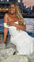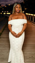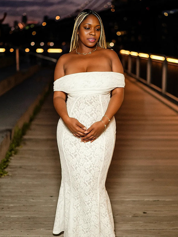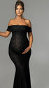Momnfancy Lace Off Shoulder Ruched Backless Bodycon Maternity Maxi Dress