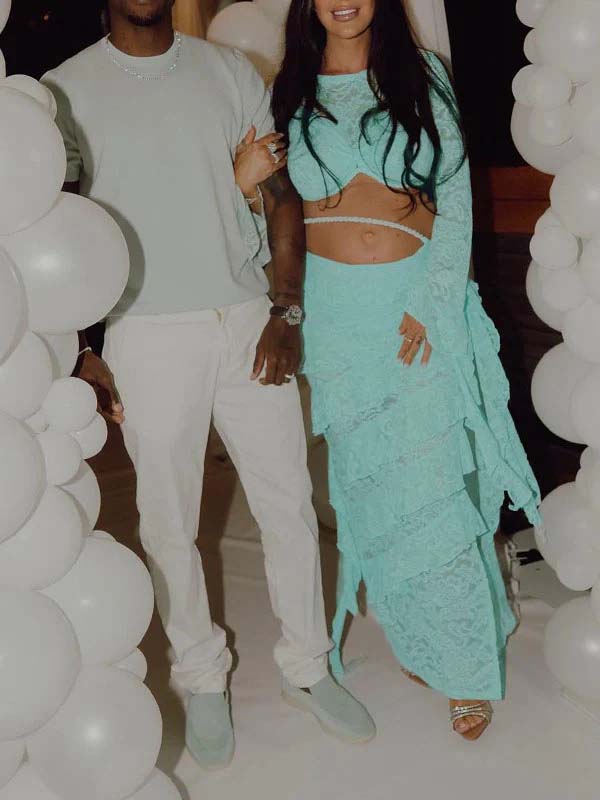 Momnfancy Lace Ruffle 2-in-1 Bodycon Patry Maternity Maxi Dress