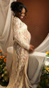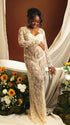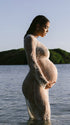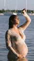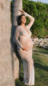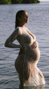 Momnfancy Lace Sheer Tulle Bodycon Plunging Neckline Maternity Maxi Dress