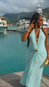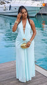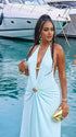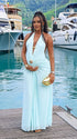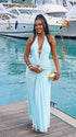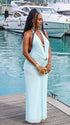Momnfancy Light Blue Halter Neck Ruched Lace-up Backless Bodycon Maternity Photoshoot Maxi Dress