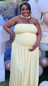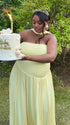 Momnfancy Light Yellow Bandeau Backless Ruched Side Slit Baby Shower Maternity Maxi Dress