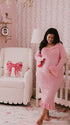Momnfancy Mermaid Flare Sleeve Bodycon Knitted Photoshoot Everyday Maternity Maxi Dress creates a comfortable yet elegant everyday maternity look in soft pink knitted fabric. The mermaid hem and flared long sleeves add graceful movement to the minimalist design, while the form-fitting cut gently supports your bump and accentuates your curves. Supple knit material ensures all-day ease, making it perfect for daily outings, casual meetups, or relaxed dates. Style it with a canvas tote and white sneakers for an effortlessly gentle ensemble that lets you radiate quiet charm in everyday moments.