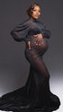 Momnfancy Mesh Bright Wire Bodycon Mermaid Photoshoot Maternity Maxi Dress