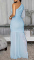 Momnfancy Mesh One Shoulder Ruched Irregular Mermaid Bodycon Cocktail Evening Gown Baby Shower Maternity Maxi Dress
