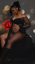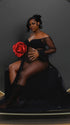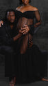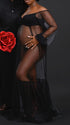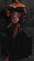 Momnfancy Mesh Polka Dot Off Shoulder Ruffle Side Slit Tulle Puff Sleeve Photoshoot Maternity Maxi Dress