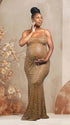 Momnfancy Mesh Rhinestone Spaghetti Strap Bodycon Photoshoot Maternity Maxi Dress
