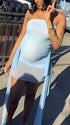 Momnfancy Mesh Ruffle Solid Color Bandeau Side Draped Bodycon Party Maternity Mini Dress