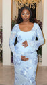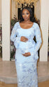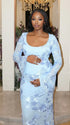 Momnfancy Mesh Solid Color Embroidery Floral Ruffle Flare Sleeve Bodycon Maternity Maxi Dress creates an ethereal maternity look in sky blue mesh fabric. Delicate floral embroidery adorns the sheer mesh, while flared sleeves and layered ruffles enhance the romantic appeal. The form-fitting silhouette gently supports your bump, with stretchy material ensuring comfort and ease of movement. Perfect for weddings, baby showers, or spring garden parties, this dress pairs beautifully with pearl accessories and a clutch to complete a fairy-like ensemble that makes you feel enchanting on every special occasion.