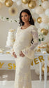 Momnfancy Mesh Solid Color Embroidery Floral Ruffle Flare Sleeve Bodycon Maternity Maxi Dress
