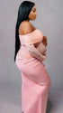 Momnfancy Mesh Splicing Ruched Off Shoulder Bodycon Elegant Long Sleeve Baby Shower Maternity Maxi Dress