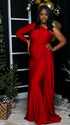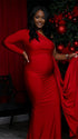 Momnfancy Oblique Shoulder Ribbon Mermaid Bodycon Evening Gowns Maternity Maxi Dress