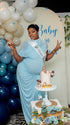 Momnfancy Oblique Shoulder Ruched Waist-cinching Baby Shower Maternity Maxi Dress