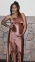 Momnfancy Oblique Shoulder Side Slit Maternity Maxi Dresses