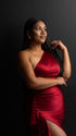 Momnfancy Oblique Shoulder Side Slit Maternity Maxi Dresses