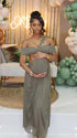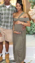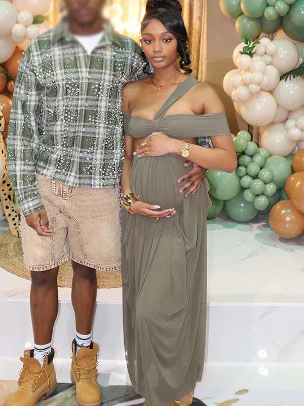 Momnfancy Off Shoulder Cut Out Backless Halter Neck Falbala Baby Shower Maternity Maxi Dress