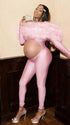 Designed for style-focused mamas-to-be, this versatile maternity set features ultra-elastic, bump-friendly fabric that fits comfortably through all trimesters—snug, supportive, and never restrictive. It comes in 3 versatile colors: rich burgundy (ideal for baby showers, maternity photoshoots, or date nights), sleek black (a daily staple for errands, prenatal checks, or casual outings), and soft pink (perfect for girls’ brunches or low-key gatherings); the removable fluffy shawl adds glamour and warmth to dressy looks, while removing it creates a sleek, minimalist vibe—style it with red heels (burgundy), flat boots/sneakers (black), or dainty pearl earrings (pink) to suit any occasion.