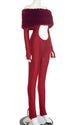 Momnfancy Off Shoulder Cut Out Fluffy Fuzzy Crop Bodycon Long Sleeve Party Evening Baby Shower Maternity Jumpsuit