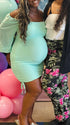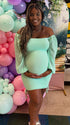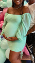 Momnfancy Off Shoulder Drawstring Bright Wire Lantern Sleeve Party Baby Shower Plus Size Bodycon Maternity Mini Dress