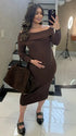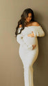 Momnfancy Off Shoulder Knit Bodycon Mermaid Going Out Baby Shower Maternity Sweater Maxi Dress