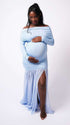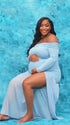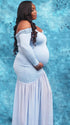 Momnfancy Off Shoulder Mesh Bodycon Mermaid Party Gown Baby Shower Maternity Maxi Dress