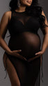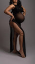 Momnfancy Off Shoulder Mesh Split Drawstring Bikinis Swimwear Photoshoot Maternity Maxi Dress