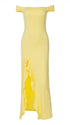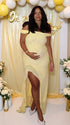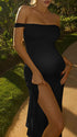 Momnfancy Off Shoulder Ruched Ruffle Falbala Side Slit Elegant Cocktail Gown Maternity Maxi Dress